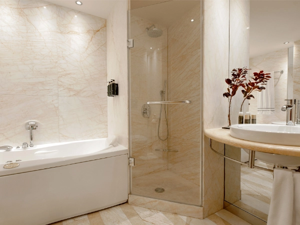 Private bathroom with shower and tub combination, Hairdryer, Bathrobe available for your use.
