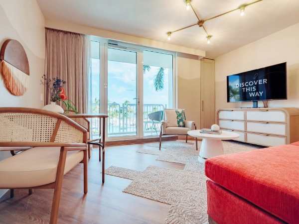 Please note that the hotel is made up of two hotel sections: The Marina Hotel (18+ only) and the Renaissance Ocean Suites (all ages and family friendly). The room category descriptions indicate which hotel section the room is located in.