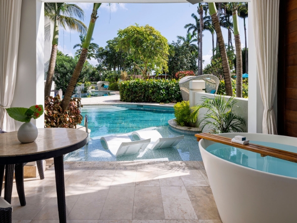 In a prestigious location that has long been a favorite of jet-setters, Sandals Barbados is the most exclusive Sandals Resort ever built. It's a five-star Luxury Included® resort where sophistication and style meet. An unparalleled array of eleven dining options, eight cozy lounges and trendy bars, three creative pools, architecture that brings the outdoors in, and suites with the most opulent amenities are all designed to enhance the senses. The ideal, natural setting for this Barbados resort's unparalleled luxury is found on the immaculate white sands of Dover Beach. Because Sandals Royal Barbados is right next door, you can enjoy all the restaurants, bars, and facilities, combining two incredibly upscale vacations into one.