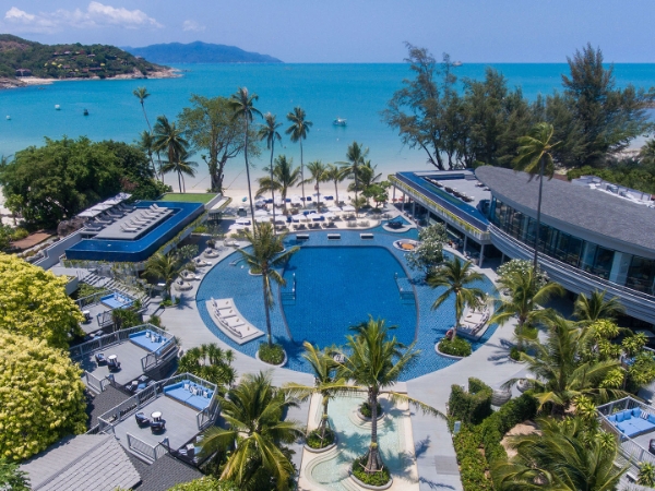 Nestled along the serene shores of Choeng Mon, this exquisite accommodation seamlessly blends the vibrant coastal charm of southern Thailand with the opulence of a luxury hotel. Just 5 kilometers from the airport, Meliá Koh Samui features elegantly designed suites set amidst lush tropical foliage. Guests can indulge in a diverse array of international cuisine at Koko Kitchen or savor Mediterranean specialties at Breeza. With its prime location and outstanding amenities, this beachside haven is ideal for hosting both corporate events and elegant banquets, while remaining conveniently close to the island's key attractions.