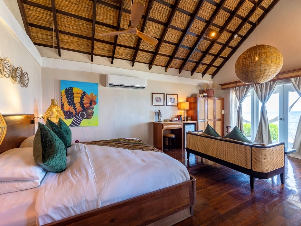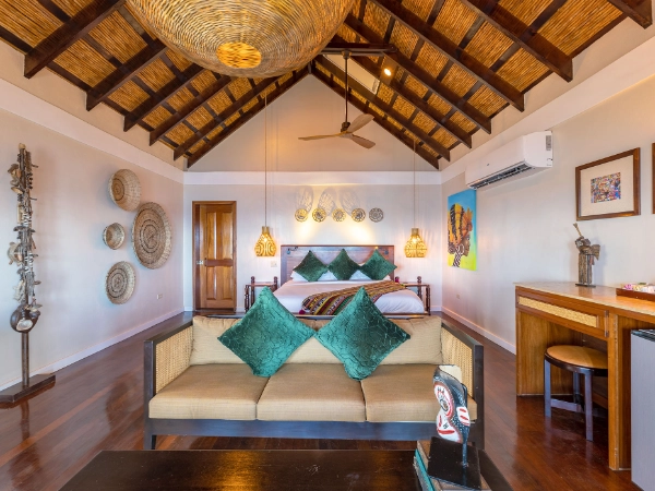 Terrace with direct pool access, AC and ceiling fan, TV, Telephone, In-room safe, Mini-fridge, Coffee maker, Private courtyard with plunge pool, Outdoor shower.