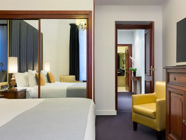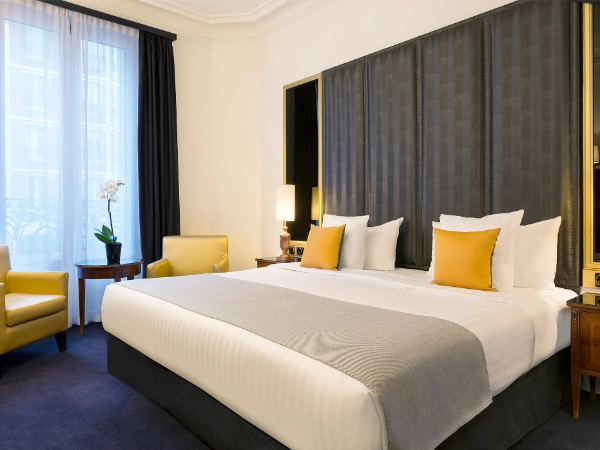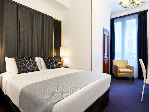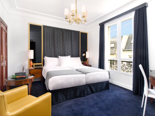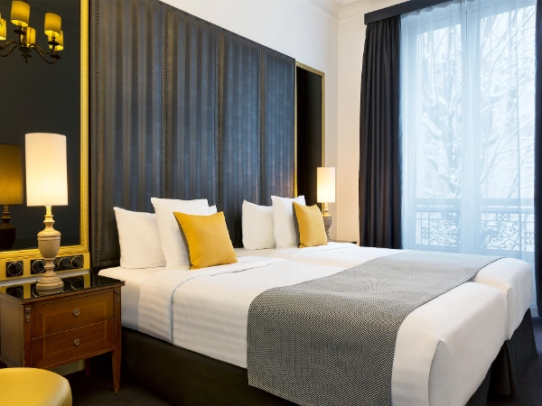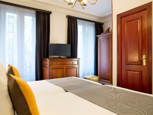 This central hotel is situated on the peaceful Avenue Victor Hugo. It connects the Trocadero and the Arc de Triomphe along wide streets. Walking distance from Palais Congres center. Closest metro station Victor Hugo line 2.