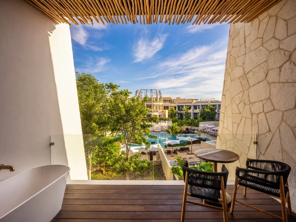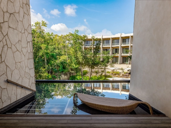 Experience a lush and mystic jungle at Secrets Tulum, perfectly situated in the heart of historical Tulum within the Luxury Aldea Zama Complex, with fusions of elegant and boho design by award winning architect Michael Edmonds. The beautiful jungle inspired décor includes elements of water, wood, stone, and endemic lush vegetation creating a romantic and serene ambiance where guests will enjoy dedicated areas for meditation and yoga. They will stroll through the natural and modern walkways by cenote inspired pools and discover the roof tops and fire pits cleverly situated throughout the property creating a stunning ambiance.