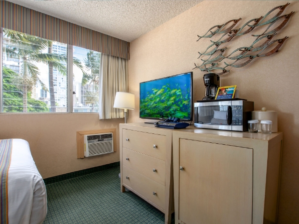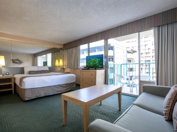 A surfer’s lifestyle is all about being inspired by the ocean, hitting the beach for sun therapy, and laid back living with a sense of freedom. The moment you enter Aqua Aloha Surf Waikiki, you’ll feel that freeing vibe all around you. Friendly staff that radiates aloha spirit and a bright lobby decorated in blues of the ocean and shades of green like swaying palm trees. Guests enjoy hotel amenities that include a pool, barbecue grill, and WiFi to stay connected. The hotel is located just a block from the International Market Place, a few minutes from Ala Wai Golf Course, and two blocks to the beach. Stay near all the fun things to do in Waikiki.