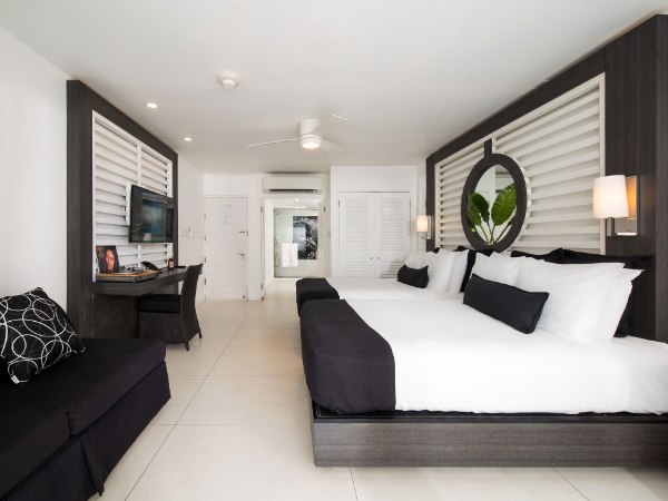 Air conditioning, TV, Telephone, In-room safe, Iron, Coffee/tea maker, Located on the ground floor with access to a personal cabana.