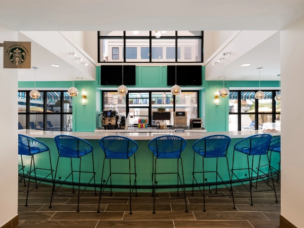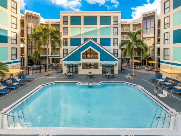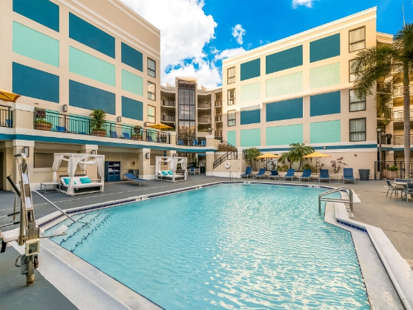 Please note the Sonesta ES Suites Orlando – International Drive will permanently discontinue operation of the afternoon/evening seasonal lobby/pool bar, The Pour. The lobby/pool bar will not re-open for the 2023 Spring/Summer seasons and remain unavailable for future seasons. The hotel will continue to offer alcoholic beverages including beer, wine, and canned mixed drinks in the adjacent gift shop. Within several blocks of the hotel on International Drive there are numerous restaurant, bar, and dining options within easy walking distance.
