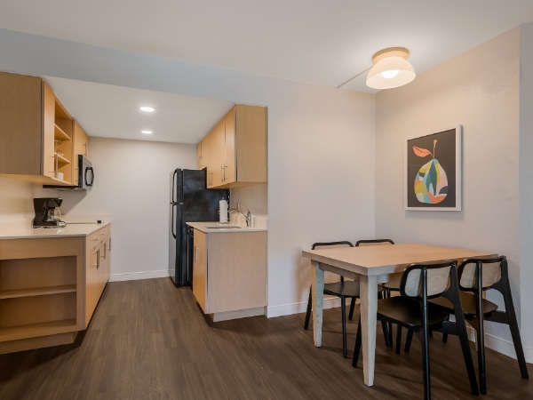 - All of their suites offer full kitchens and the common/outside seating areas remain available for guest use. Several grocery stores are located within a few miles of the hotel and grocery delivery options are available as well should guests wish to purchase breakfast items for their own use.