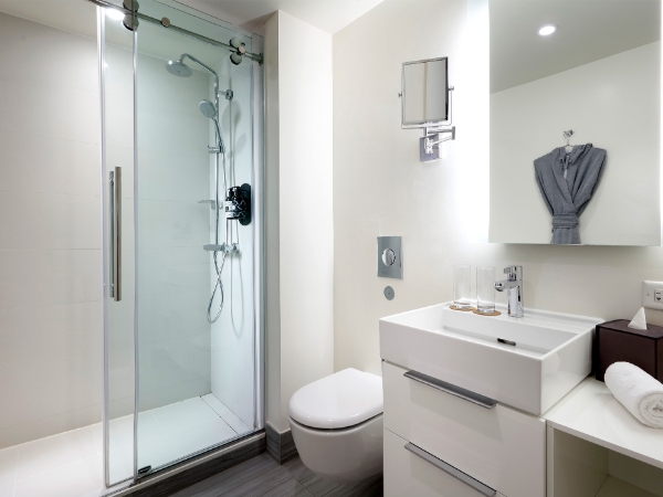 Private bathroom with tub and separate shower, Bathrobe available for your use.