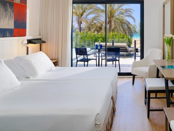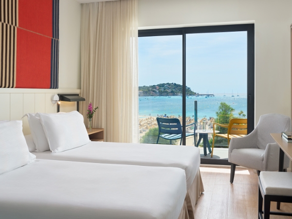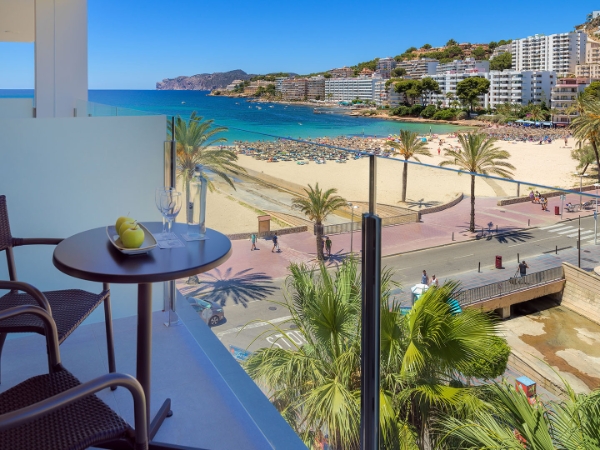 The H10 Blue Mar is located in Camp de Mar, between the prestigious port of Andratx and the well-known tourist town of Peguera. Protected by the Sierra de Tramuntana mountains, declared a World Heritage Site by UNESCO, Camp de Mar enjoys a privileged microclimate which, combined with a beautiful beach with crystal clear water and a select range of services, makes it one of the most idyllic natural landscapes in Majorca.