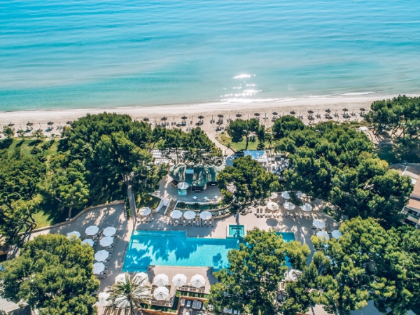 Iberostar Selection Playa de Muro Village is just steps from the beach and offers a range of amenities for families. The hotel features family rooms, four swimming pools, a new waterpark, and several dining options. Guests can relax at the spa or stay active with cycling and tennis. For children, there’s Star Camp and an Adventure Park.