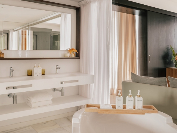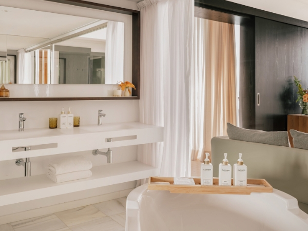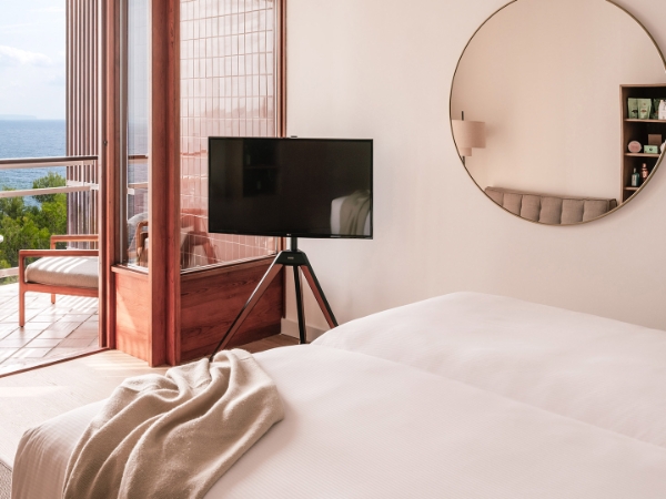 The resort offers 137 rooms and suites, exquisitely decorated and all of them with breathtaking views of the blue Mediterranean. With its own exclusive sandy cove, surrounded by the beautiful outdoors and landscaped gardens, it offers four restaurants, two swimming pools including a sky pool and main pool right next to the sea, 4 conference rooms of different size and large leisure spaces.