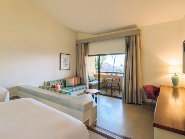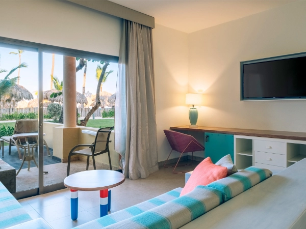 Balcony or terrace, AC and ceiling fan, TV, In-room safe, Iron, Mini-bar, Coffee maker, Welcome gift for adults (Bottle of Rum), Toys for children, Minibar stocked with juices and chocolates, PlayStation on request, Microwave on request, Free babysitting at night (From 7:00 PM until 10:00 PM), once per stay. Children between 4 -12 years old.
