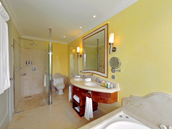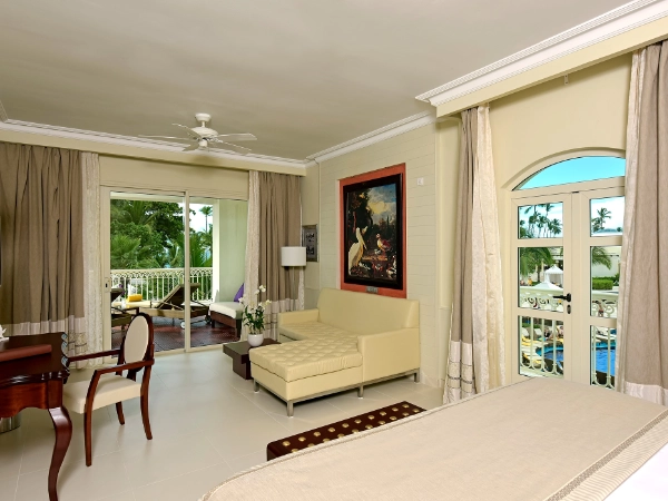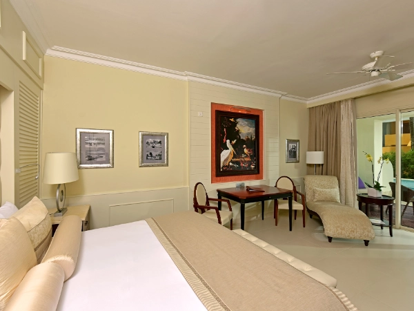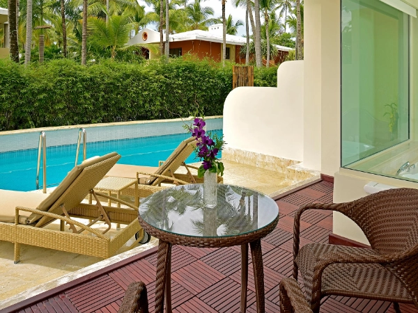 Terrace with direct pool access, AC and ceiling fan, TV, Telephone, Alarm clock, In-room safe, Iron, Mini-bar, Coffee maker, Unlimited purified water, Pillow menu, Access to the Spa Hydrotherapy area, In-room Butler Service.