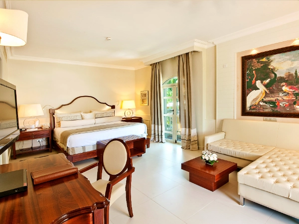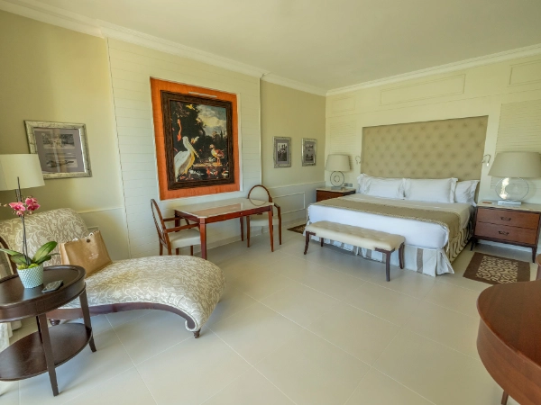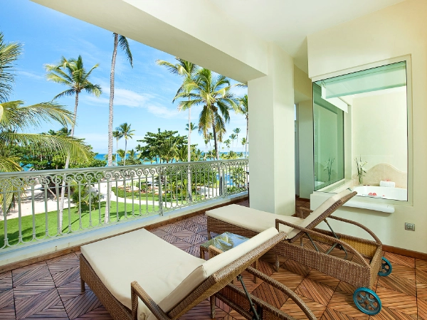 Balcony or terrace, AC and ceiling fan, TV, Telephone, Alarm clock, In-room safe, Iron, Mini-bar, Coffee maker, Located near beach and pool areas, Unlimited purified water, Pillow menu, Access to the Spa Hydrotherapy area, In-room Butler Service.