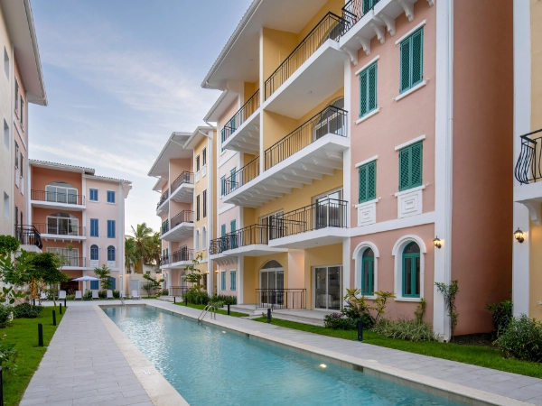 Situated in the lively Bavaro area of Punta Cana, the Reserva Real by Harper is located near the miles of pristine white sand beaches, offering ample opportunities for sun-soaked relaxation, as well as convenient access to the Downtown Mall Punta Cana, and a diverse selection of local restaurants. The hotel lies within the Cocotal Golf & Country Club. This exquisite development draws inspiration from the charming Italian town of Portofino, showcasing its distinctive architectural style. Residents and guests enjoy exclusive access to the private CIELO Beach Blub, a 27-hole golf course, a well-equipped gym, leisure facilities, swimming pools.