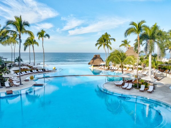 Facing the golden sands and sapphire waters of Banderas Bay, Grand Velas Riviera Nayarit provides accommodations with plush bedding, upmarket bath amenities and magnificent ocean views. This AAA Five Diamond Award-winning resort looks after families with child-approved activities, kids' and teen clubs, and soothing spa treatments inspired by ancient healing and available for all ages.