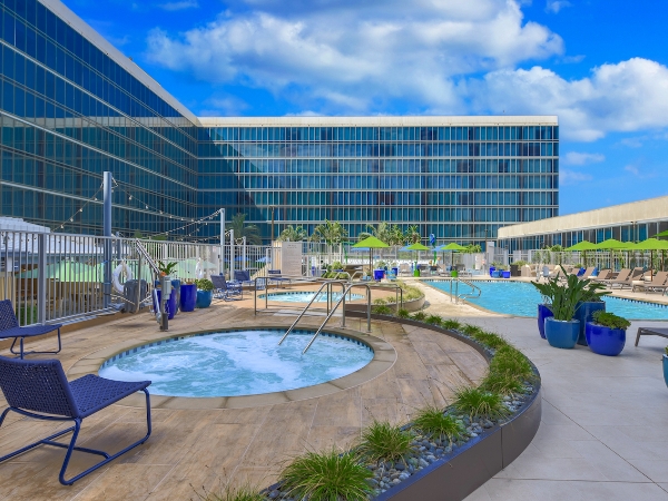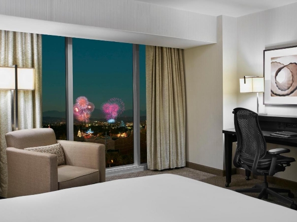 The Hilton Anaheim hotel is an official Disney Good Neighbor hotel. The hotel is one mile from Disneyland and across the street from Anaheim Convention Center. The Hilton Anaheim is the largest hotel in Orange County. Amenities includes two pools, two saunas, fitness center, on-site restaurant and Business center plus upscale accommodations and amenities.