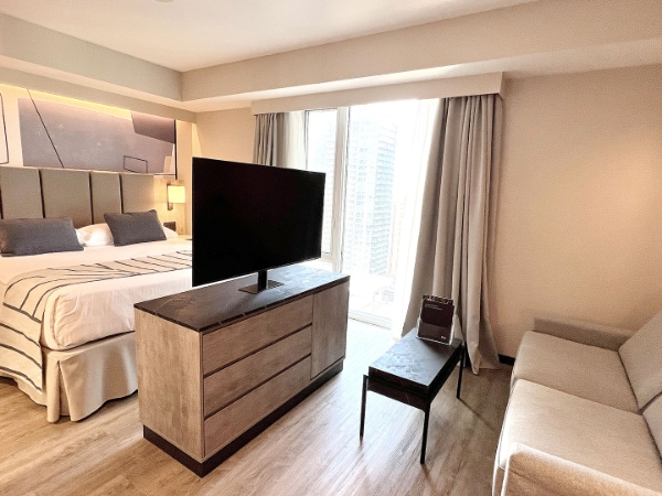 The Hotel Riu Plaza Toronto is located in the heart of the city, offering an exceptional experience for both leisure and business travellers. Its prime location in the lively Entertainment District places you within walking distance of the city's main attractions, such as the iconic CN Tower, the dynamic Rogers Centre, and the renowned Princess of Wales Theatre. Whether you are visiting the city for business or pleasure, the Hotel Riu Plaza Toronto is the ideal choice to enjoy a unique stay in one of the most vibrant cities in Canada.