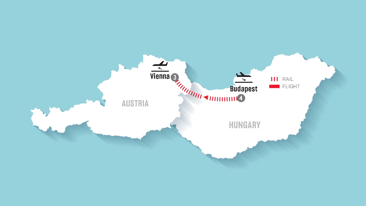 • Private airport transfers, arrival in Budapest and departure from Vienna.