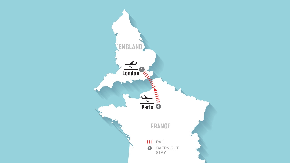 After breakfast, make your own way to Gare du Nord station for your high-speed train to London aboard the Eurostar. Ensure you arrive to check-in at 90 minutes before scheduled departure.