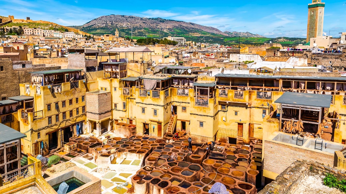 Start the day with breakfast before travelling to Fes. En route, enjoy a panoramic tour of Rabat, Morocco’s capital, featuring the Royal Palace, Hassan Tower and Chellah Gardens. Continue to the imperial city of Meknes to admire the impressive Bab Mansour gate, then stop at the Roman ruins of Volubilis to explore its remarkable mosaics and ancient remains. Proceed to Fes, where you’ll check into your hotel and relax, ready to discover the cultural heart of Morocco.