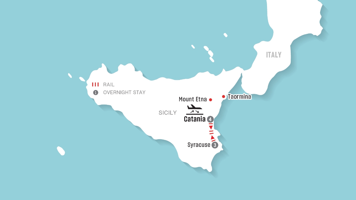 Discover the best of Sicily on this 9-day journey from Catania to Syracuse. Explore Baroque towns, ancient ruins and volcanic landscapes, from the slopes of Mount Etna to the seaside charm of Taormina. With guided walking tours and leisure time, experience Sicily’s history, flavours and vibrant Mediterranean spirit.