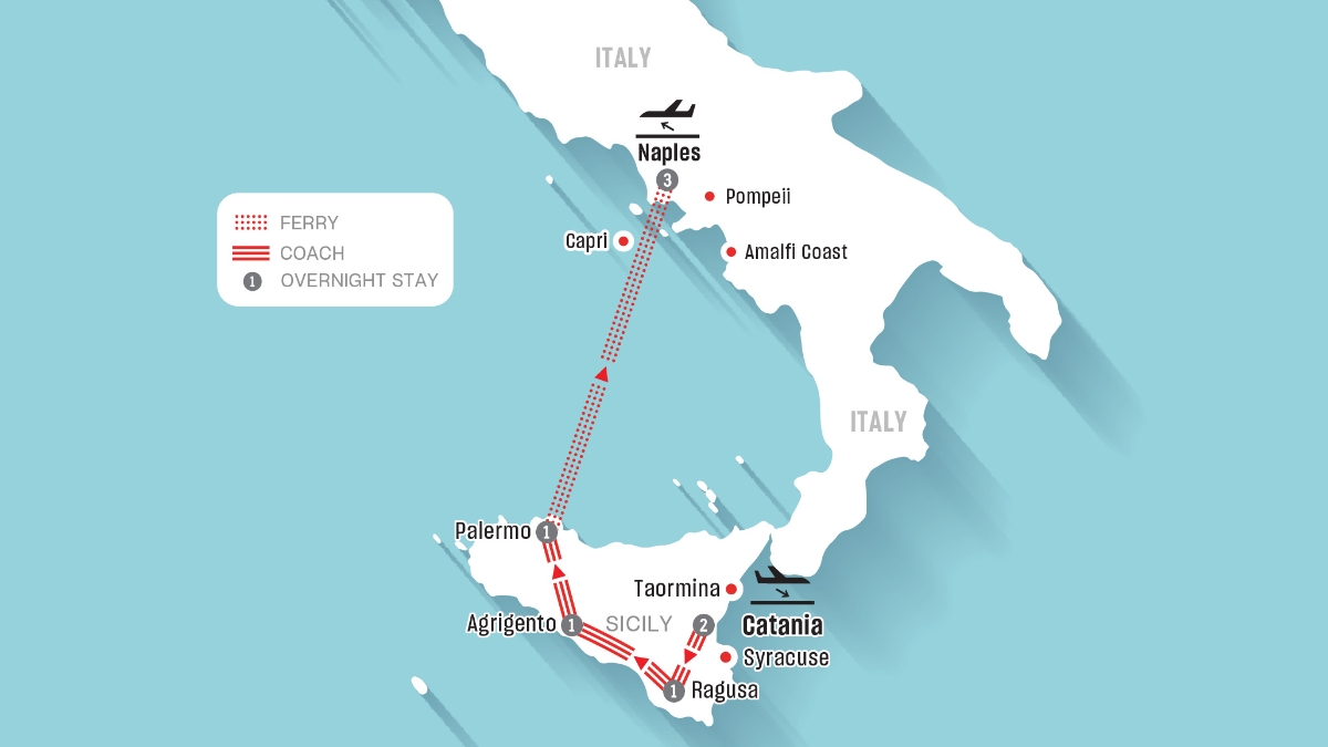 This itinerary takes travellers through the cultural and natural highlights of Sicily before continuing to discover the iconic gems of Southern Italy. From ancient archaeological sites and charming historic towns to scenic coastlines, wine tastings and vibrant city life, the journey offers a rich blend of history, flavour and breathtaking landscapes. The experience concludes in Naples with visits to world-famous sites and coastal wonders.