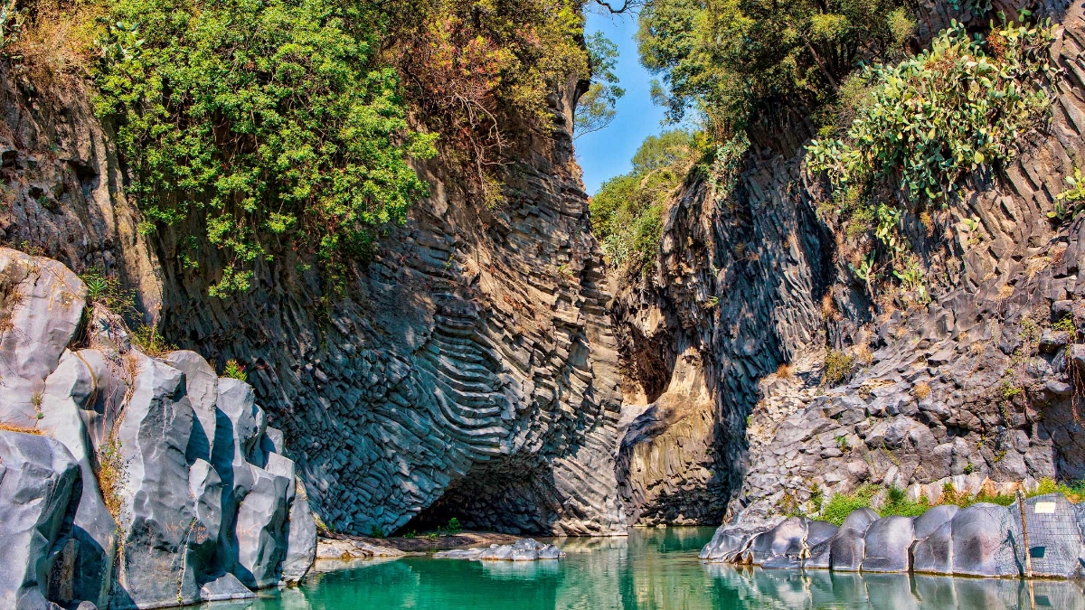 Stop for lunch in a local restaurant, then continue to the Alcantara Gorges, carved into cooled lava. Enjoy a walk along the river or relax in this striking natural setting.