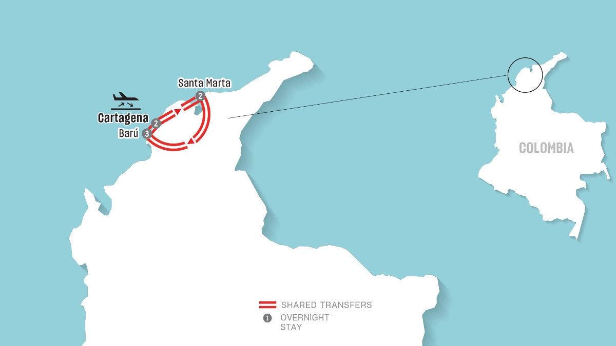 Experience the vibrant soul of Colombia on this unforgettable 8-day, 7-night journey through Cartagena de Indias, Santa Marta and Barú Island. From the moment you arrive, you’ll be immersed in a world of colour, culture and coastal charm. Each destination offers its own unique rhythm, blending rich history, warm hospitality and breathtaking natural beauty. Whether wandering through historic streets, relaxing by the sea or simply soaking in the atmosphere, this journey invites you to slow down, take it all in and enjoy the magic of Colombia at your own pace.