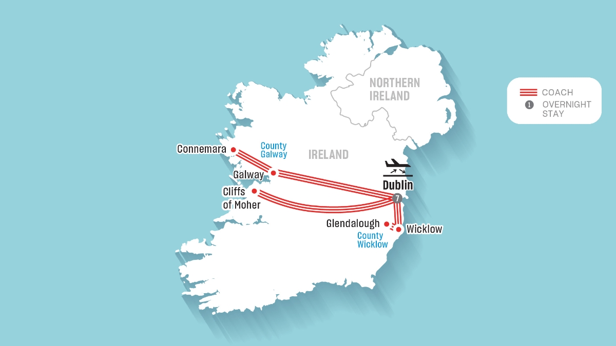 • The order of the itinerary could vary; days of excursions and times are confirmed with final confirmation and itinerary. Excursions are full days, with departures from Dublin early morning and returning in the evening. This itinerary is for reference only.