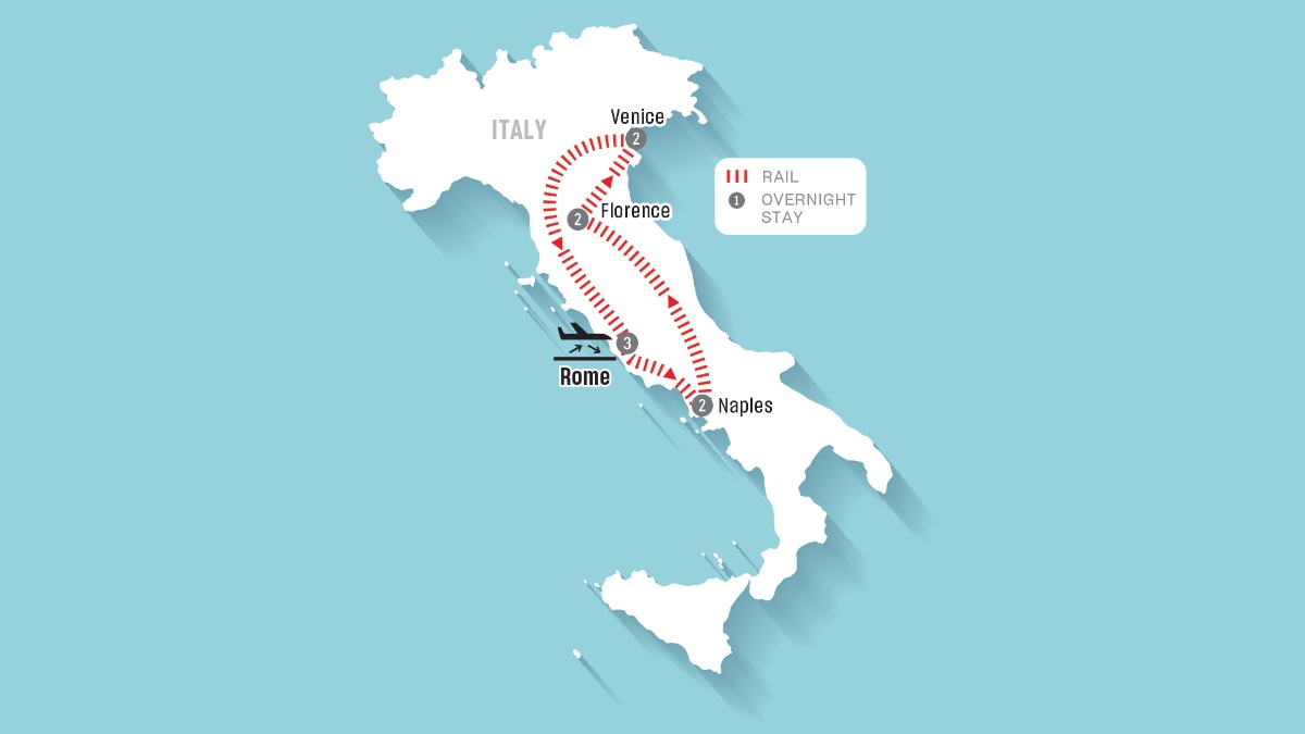 - High-speed train from Rome to Naples, Naples to Florence, Florence to Venice and Venice to Rome in selected class of service