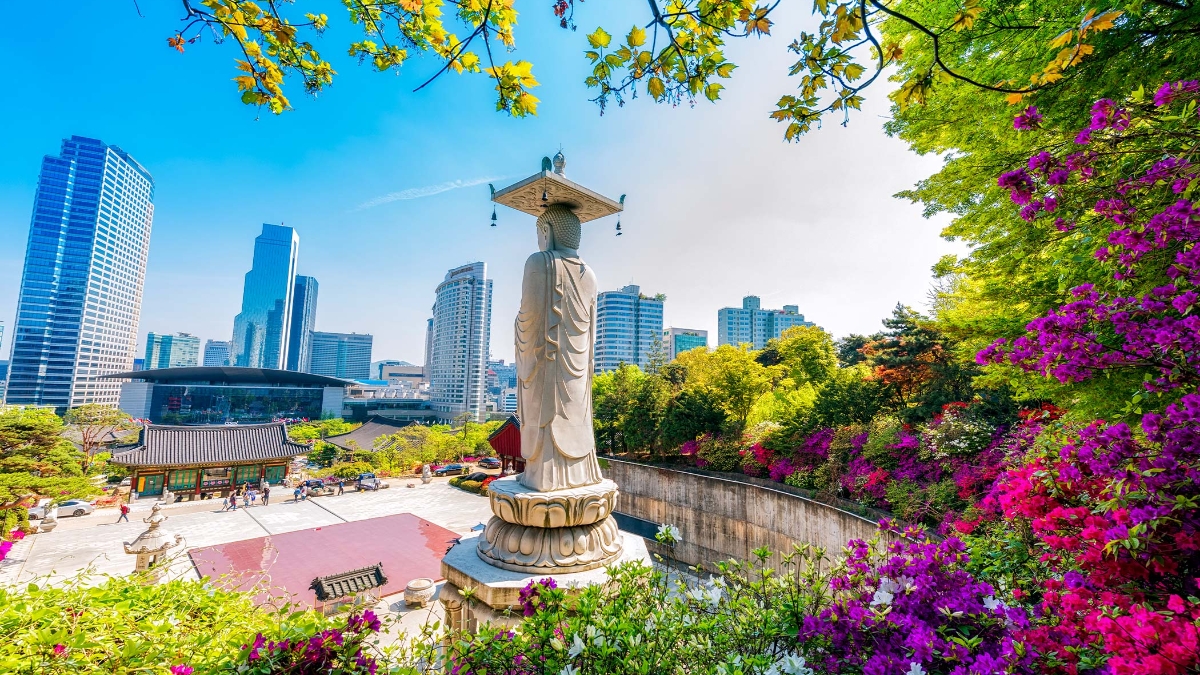 In the afternoon, take a leisurely stroll along Cheonggyecheon Stream, a serene urban oasis, before exploring Myeongdong, one of Seoul’s busiest and most vibrant commercial districts, filled with shops, street food and local energy.