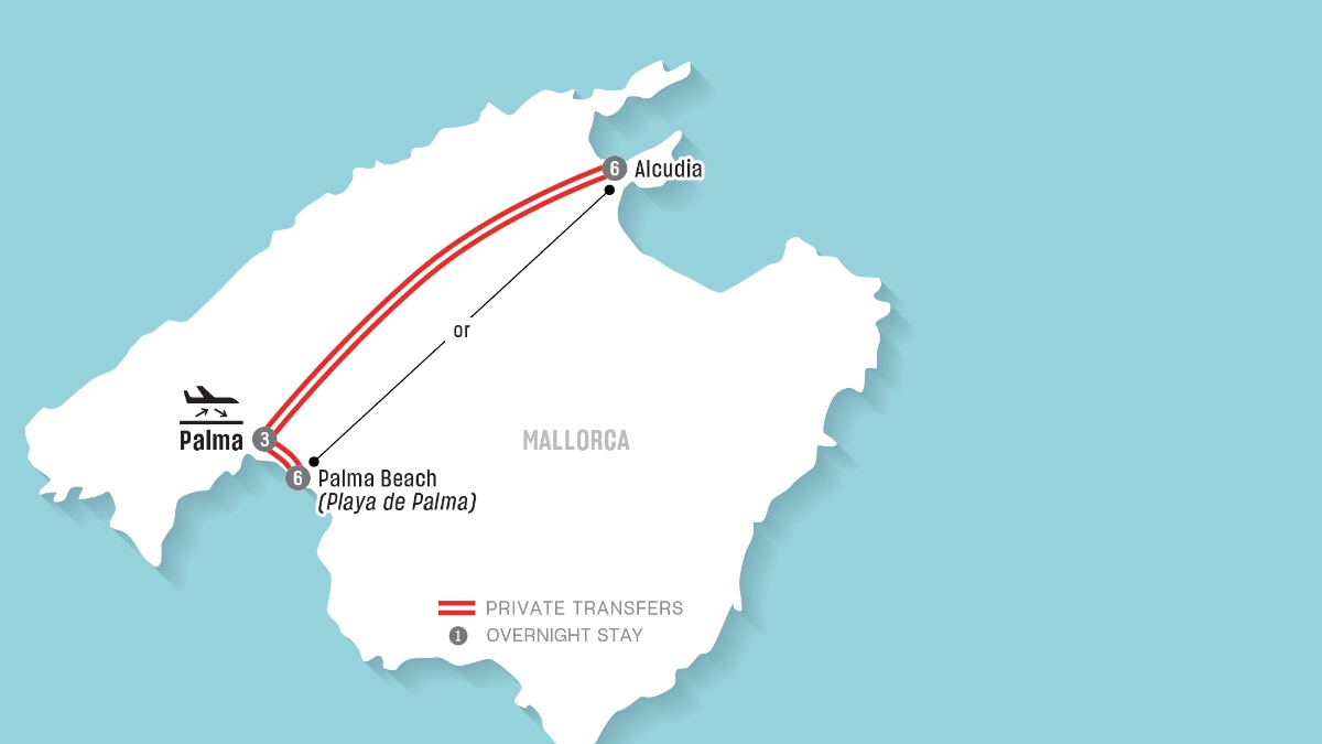 - 3 nights Palma City accommodation in selected category and 6 nights Palma Beach accommodation in selected category