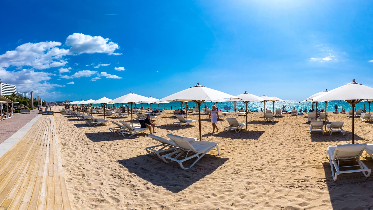 Located in nearby Palma city, Playa de Palma is a long stretch of beach in Mallorca that runs from Can Pastilla to S'Arenal. It features a wide, sandy beach, a promenade for walking and cycling, and a mix of family-friendly spots and livelier nightlife zones.