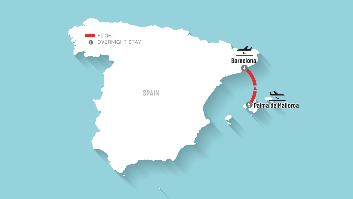 • 9 nights of accommodation in your selected category, 5 Nights in Mallorca & 4 Nights in Barcelona