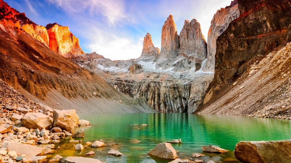 Embark on an unforgettable journey through Chile’s vibrant capital and the untamed wilderness of Patagonia. Begin in Santiago, where a blend of modern energy and rich history sets the stage for your adventure. Then, travel south to Patagonia, a land of awe-inspiring landscapes, from towering mountains and glaciers to pristine lakes and vast plains. Explore the stunning Torres del Paine National Park, hike through its dramatic valleys, and marvel at the region's wildlife.