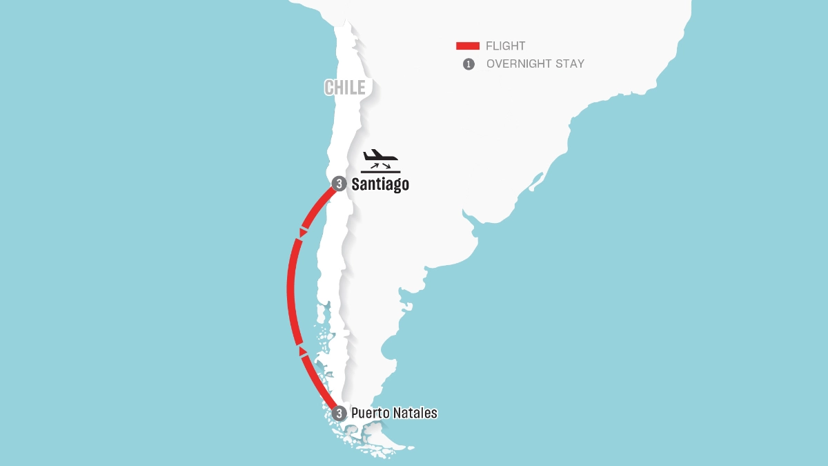 - Round-trip Economy Class airfare between Santiago and Puerto Natales