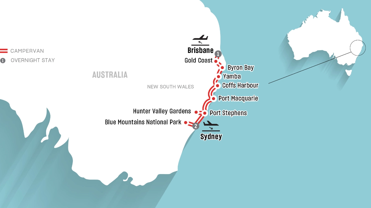 Start your journey in Sydney, with its world-famous landmarks and vibrant culture, this journey takes you north through a tapestry of natural wonders and relaxed coastal communities. From the surfing mecca of Byron Bay to the lush hinterlands near Coffs Harbour, and all the way to Brisbane—the subtropical capital of Queensland—every stop adds a new layer to your road trip story.