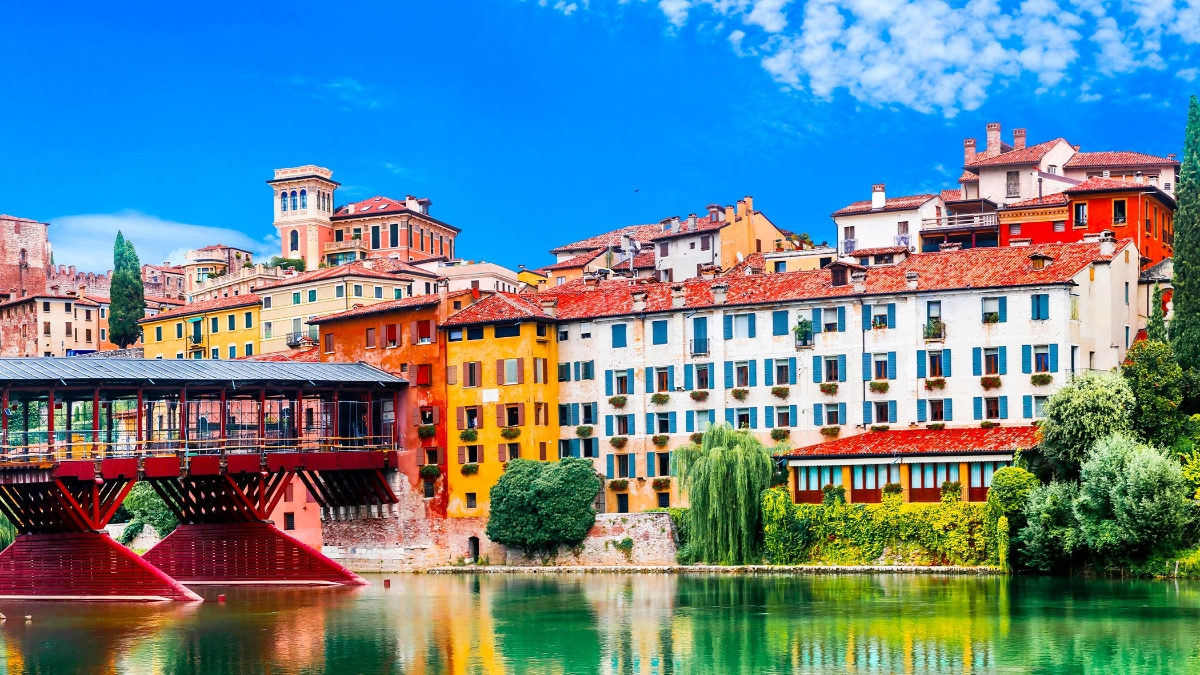 Visit Bassano del Grappa, known for its iconic Ponte Vecchio wooden bridge and artisan distilleries offering grappa tastings ($). The town is also rich in art and mountain views.